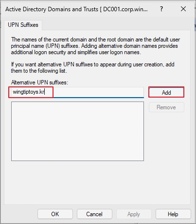 Enter the domain to be used for user accounts -> Click Add -> Click OK.