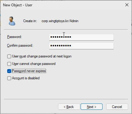 Create an Admin account to be used on the DC as shown below. (It is recommended not to use the default Administrator account for security purposes.)