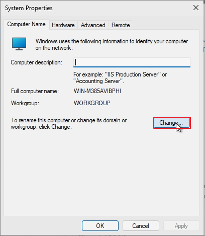Navigate to Server Manager -> Local Server -> Click on Computer Name.