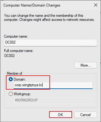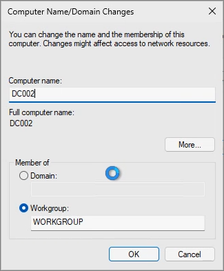 Change the computer name to something that clearly identifies it as a Domain Controller. -> The system will reboot.