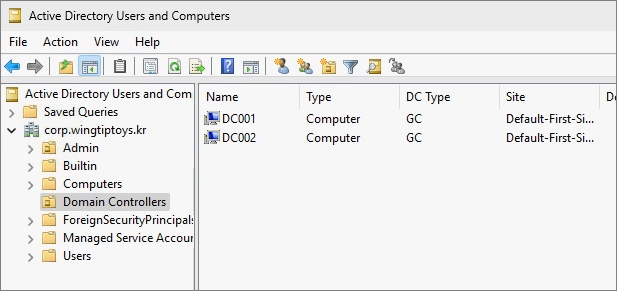 In Active Directory Users and Computers (ADUC), you can verify that both Domain Controllers are listed.