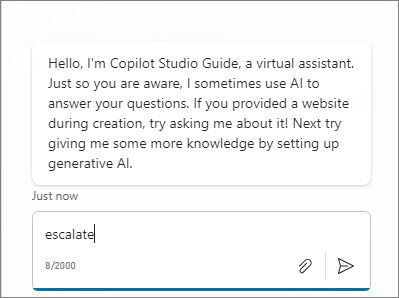 In Test Chat, type Escalate.