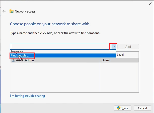 Set Permission Level: Read/Write -> Share