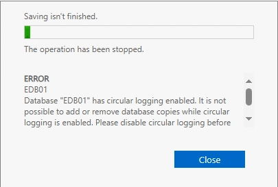 If circular logging is enabled, an error will occur. Disable circular logging before proceeding, then re-enable it later.