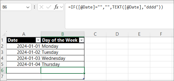 Calculate "The day of the Week", based on "Date".