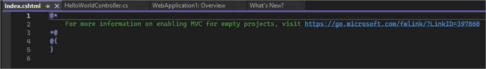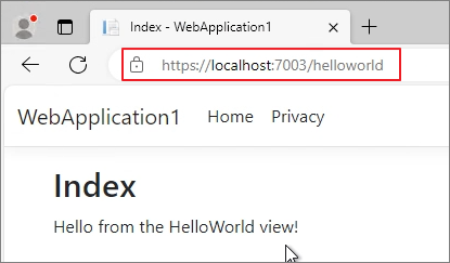 Finally, the View constructs the user interface and displays the data received from the View Model. Create corresponding view files for each action in the Views/Home directory.