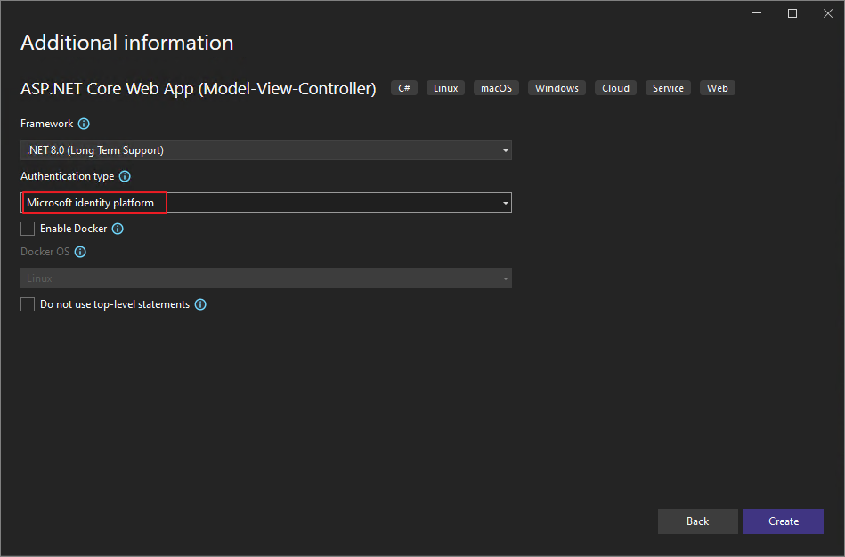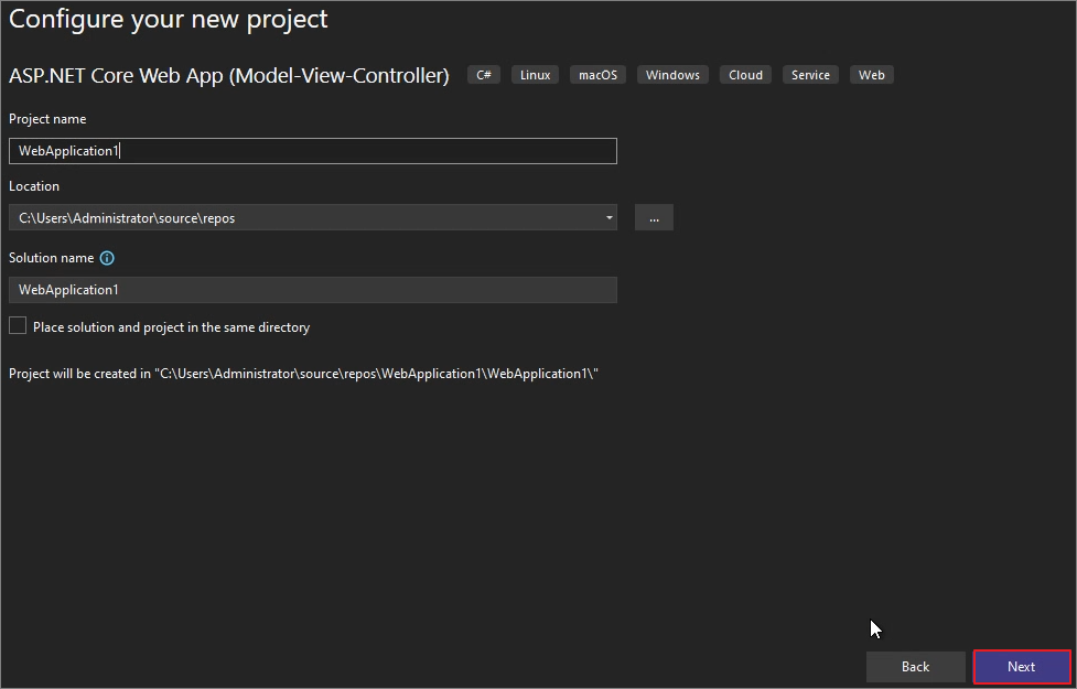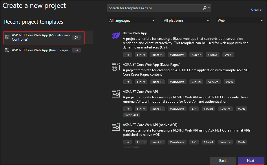 ASP.NET Core Web App (Model-View-Controller) -> Next
