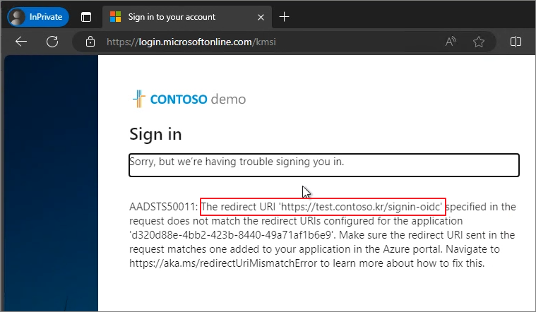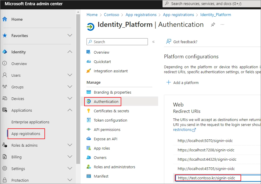 Entra ID Admin center -> Applications -> App registration -> Authentication -> Add the following to Redirect URIs as shown below.