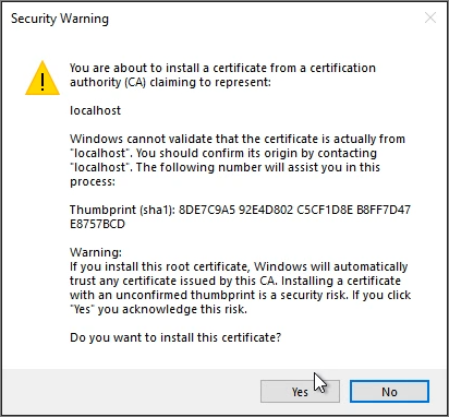 If any messages related to SSL certificates appear, click "Yes" for all of them.