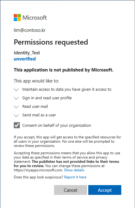 Upon first access, the permissions are displayed as shown below -> Click Accept. -> Accept