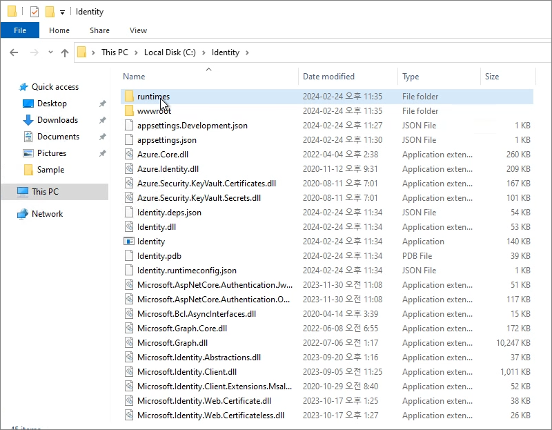 As done in the previous post, after extracting the files, copy the essential folders and files, such as wwwroot, to the root directory as shown below.