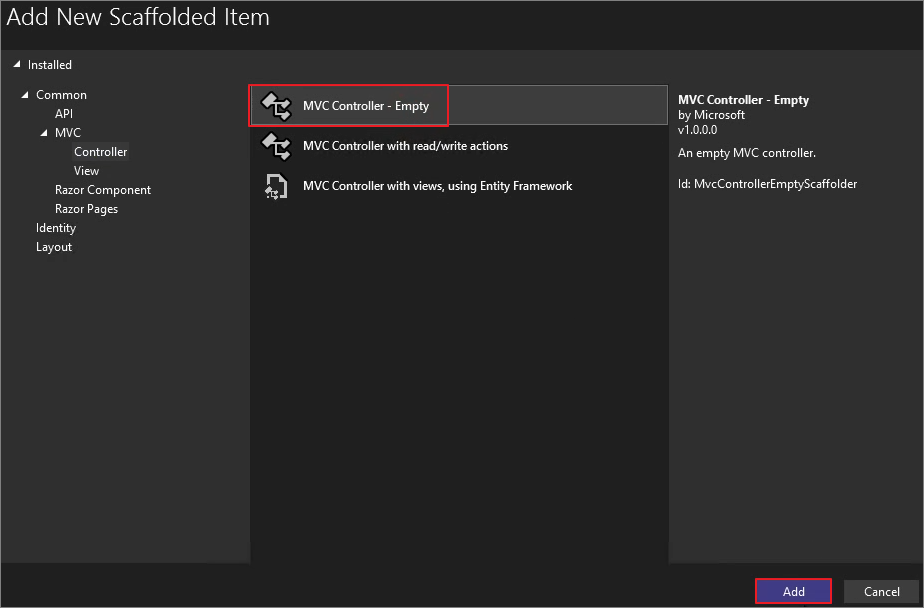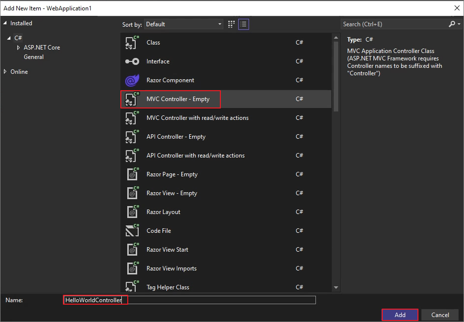 Razor View - Empty -> Confirm the name as Index.cshtml. -> Add