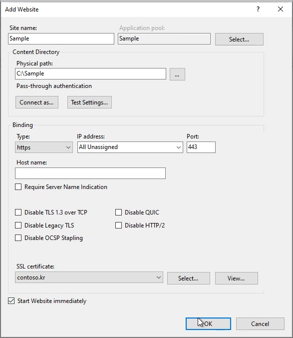 Proceed with the creation process as shown below. (For the certificate, specify the one that was previously created.)