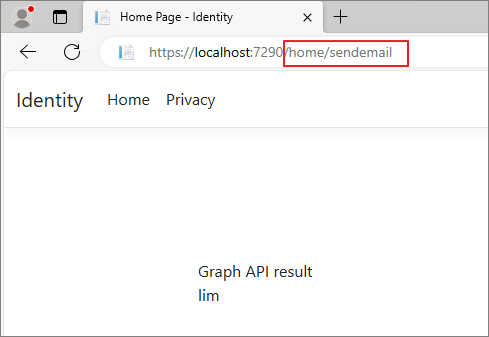 Add the SendEmail action method to the HomeController. This method accepts EmailSendViewModel as a parameter and sends an email using the Microsoft Graph API.