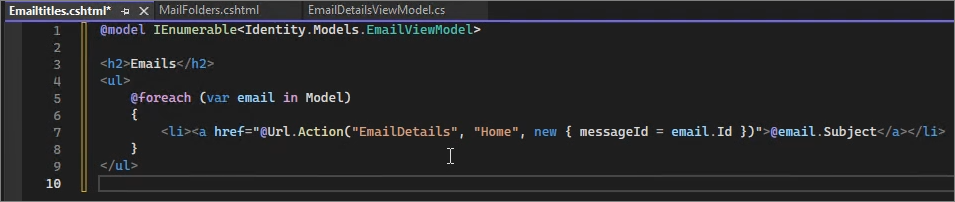 When you navigate to the Home/emailtitles URL, it will be displayed as shown below.
