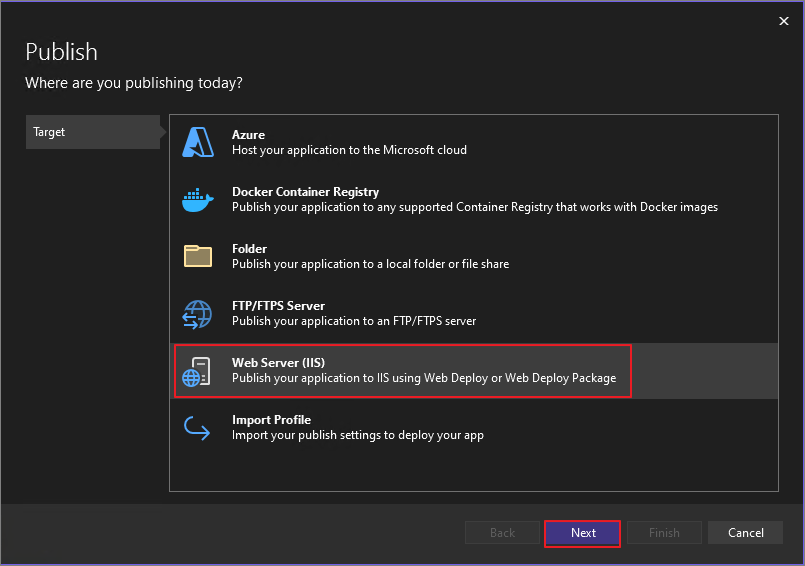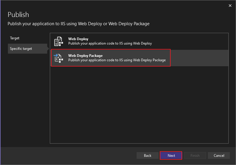 Select the following options: