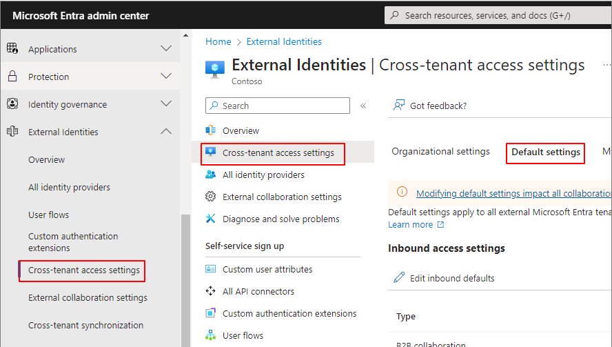 Entra Admin Center > External Identities > Cross-tenant access settings