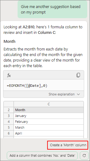 As I continue to research prompts, it seems that a request like "Create a column" is more appropriate than simply asking for calculations, so I plan to focus on that aspect.