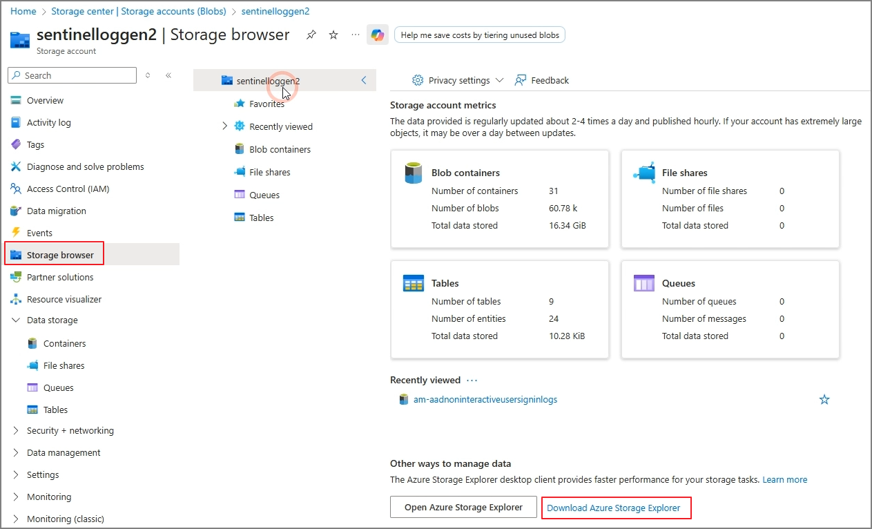 Go to Storage Account → Storage browser → Download and install Azure Storage Explorer