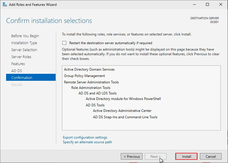 Proceed with the installation of Active Directory Domain Services Roles in the same manner as on the Main DC.